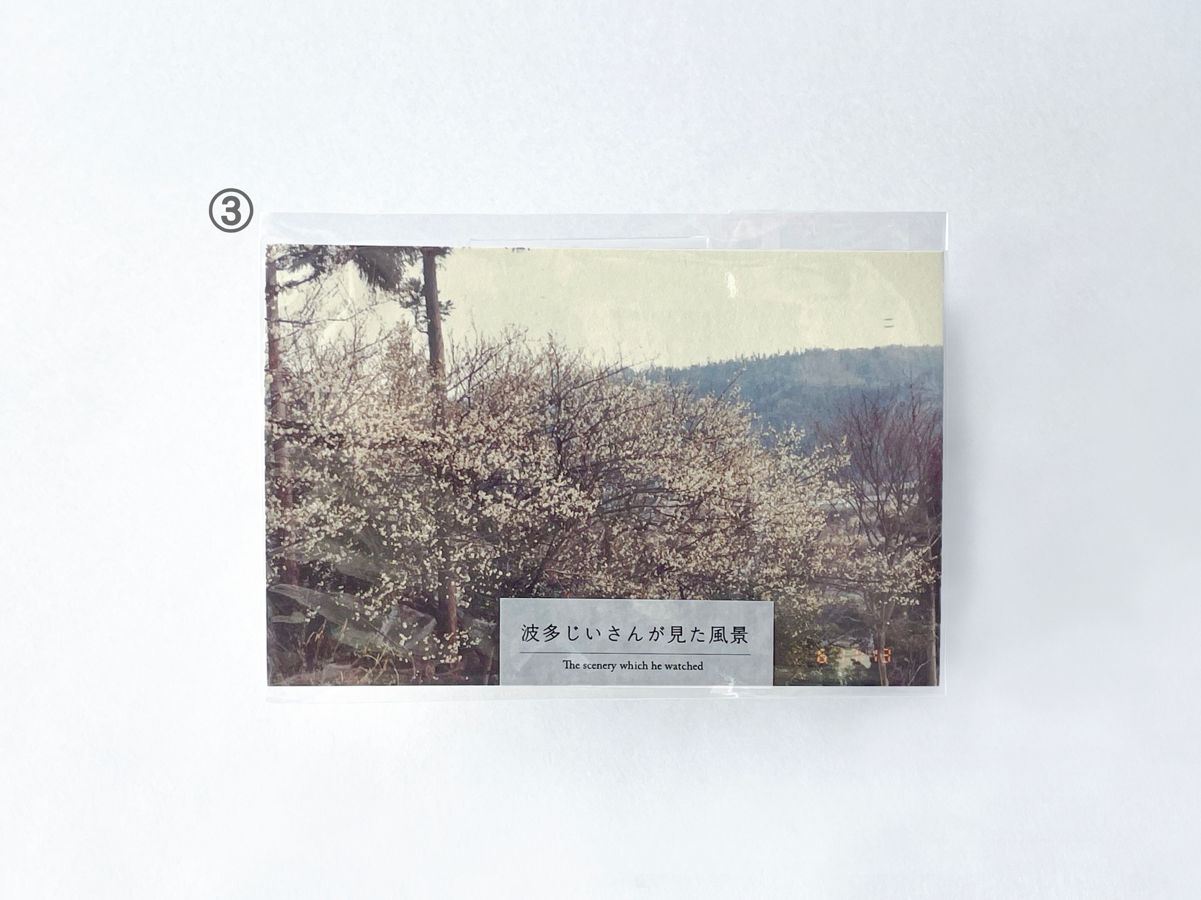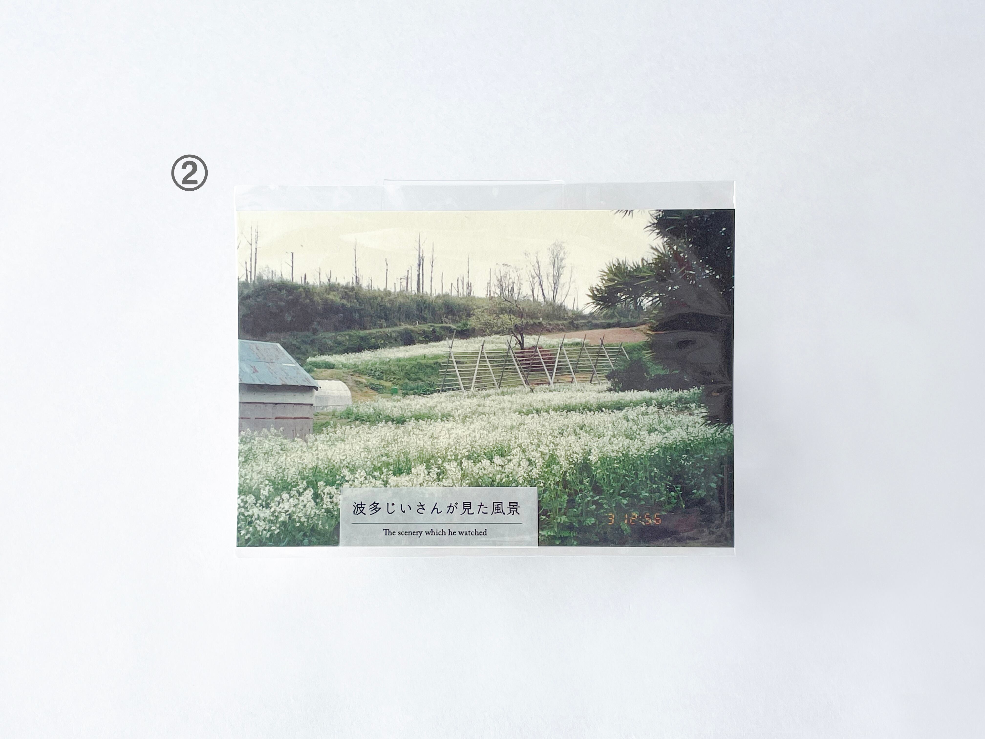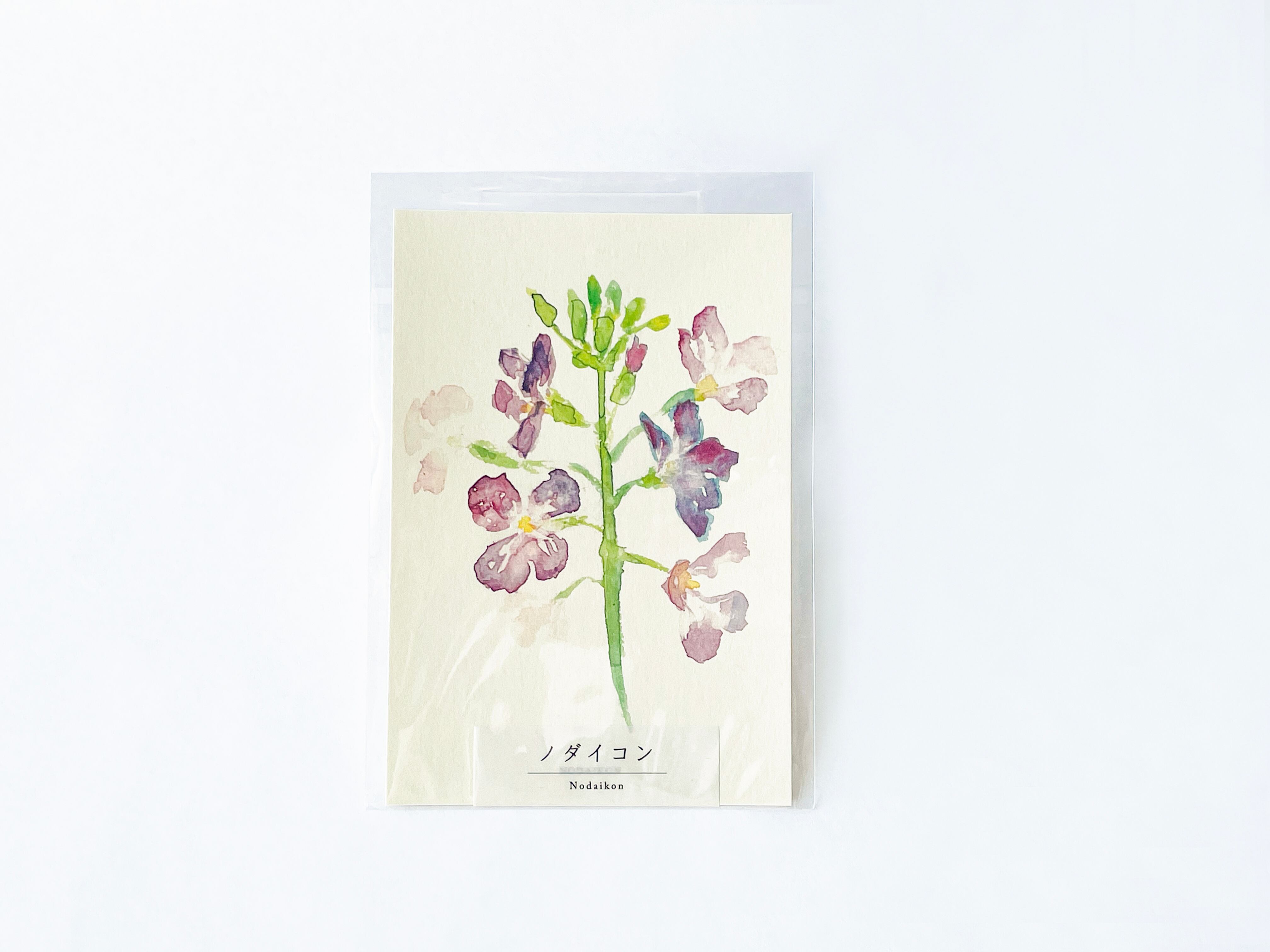 海士町の植物、魚、キンニャモニャなどのイラストが描かれたポストカードと